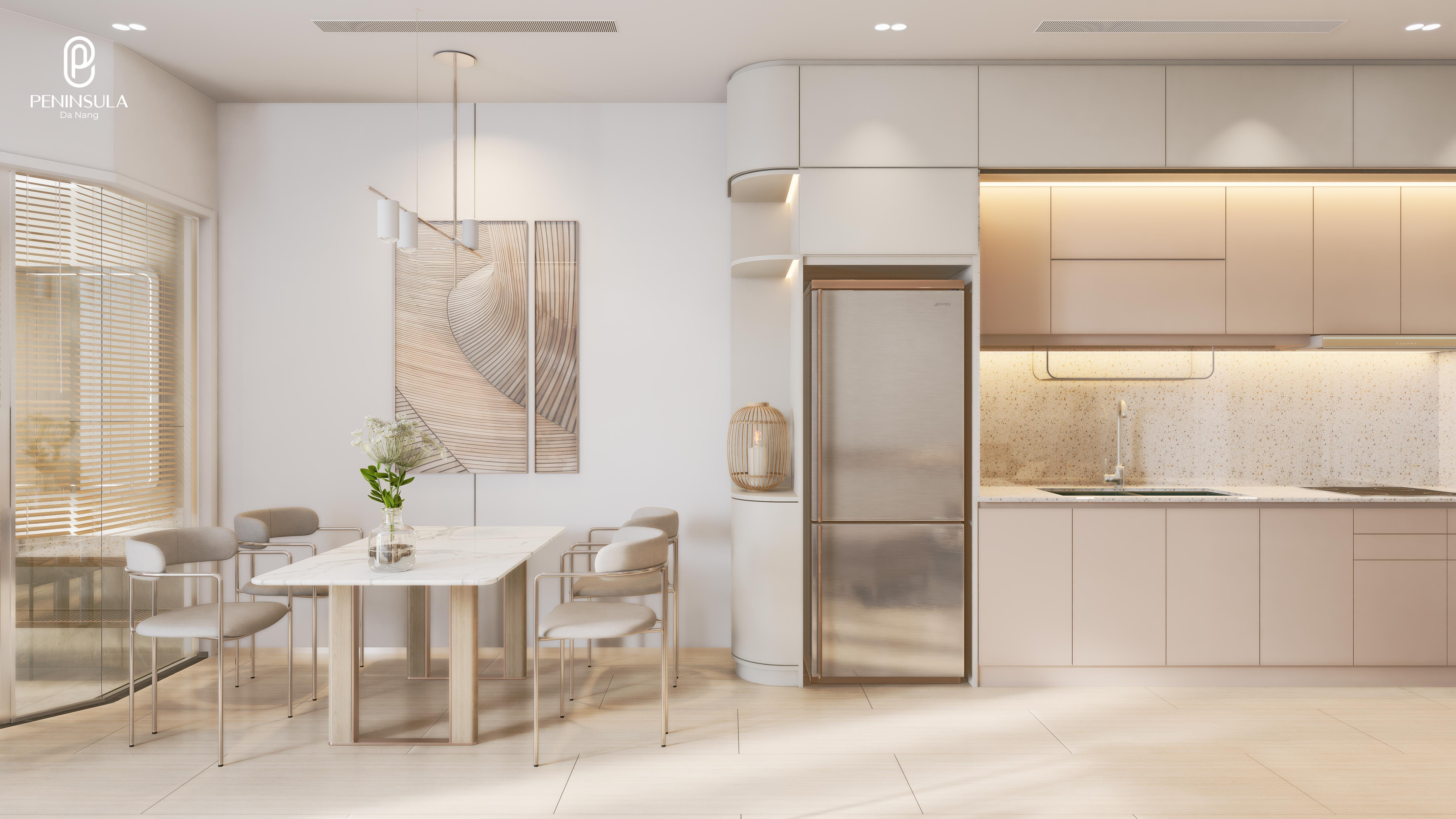 Căn hộ sở hữu view vịnh kết hợp sông Hàn vĩnh cửu – một trong những giá trị nổi bật nhất của dự án Peninsula. Tầm nhìn rộng mở ra mặt nước giúp không gian sống luôn mát mẻ, dễ chịu và mang tính thư giãn cao. View sông – view vịnh là yếu tố quan trọng giúp căn hộ duy trì sức hút lâu dài, đặc biệt đối với khách thuê là chuyên gia, người nước ngoài hoặc nhóm khách có yêu cầu cao về chất lượng sống.
